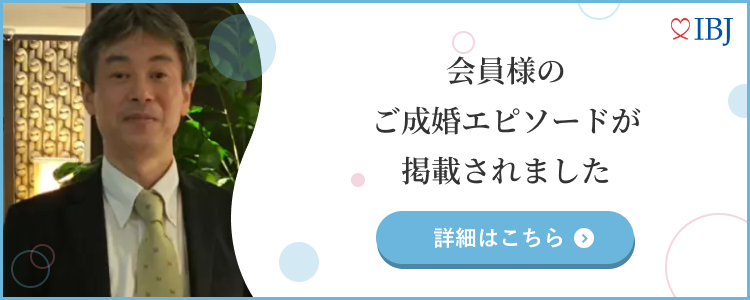 会員数が最も多いこともそうですが、会員の内訳や属性などについて、全体的な統計値を公開しているIBJを選びました。その中でも、お話しをさせていただくなかで、好感を持てたMarry Story様にお願いさせていただくことにしました。初めての結婚相談所婚活でしたが、当初想定していたよりも非常に多くの方々とお会いすることができ、一昔前の相談所のイメージとずいぶん異なる世界なのだなと感じました。無事成婚退会することもできましたし、思い切って婚活してみてよかったです。